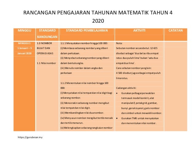 Rpt Matematik Tahun 4 2021 Kssr Semakan Sumber Pendidikan